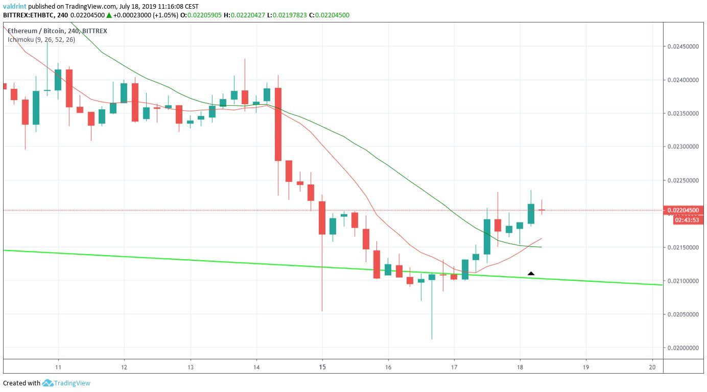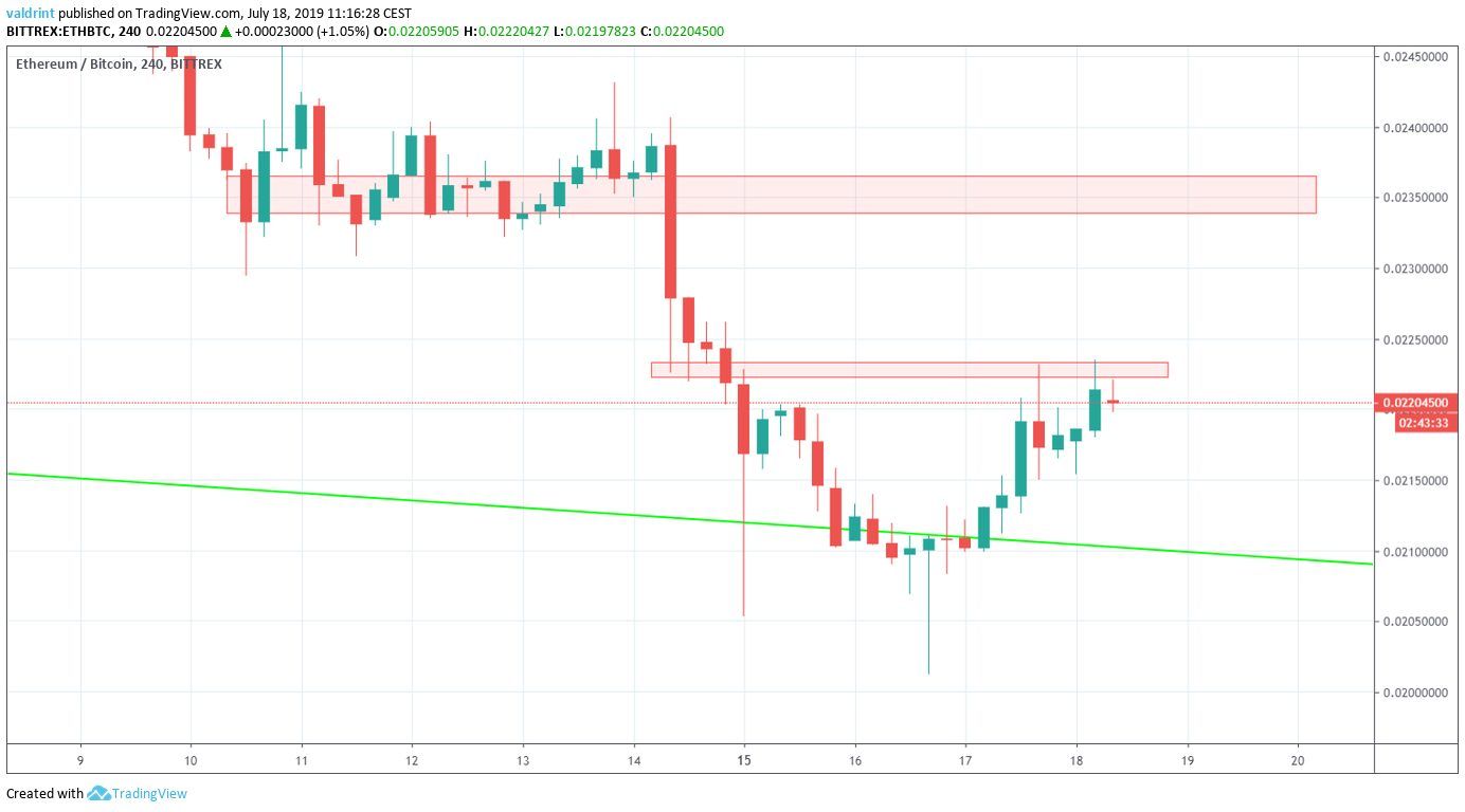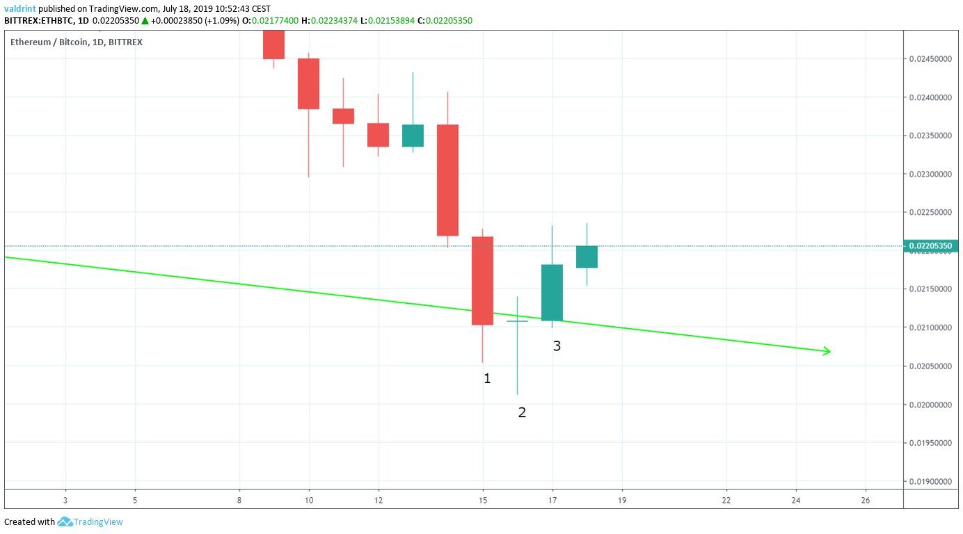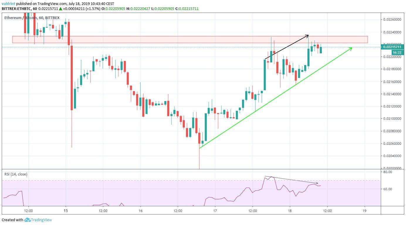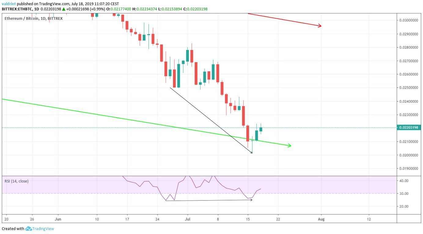 - ETH/BTC is following an ascending support line.