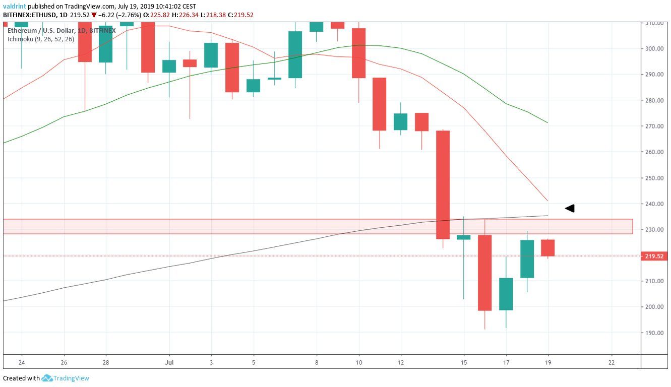 This resistance area is found near $230. It previously acted as support throughout May and June, before the Ethereum price broke down from it on July 13.