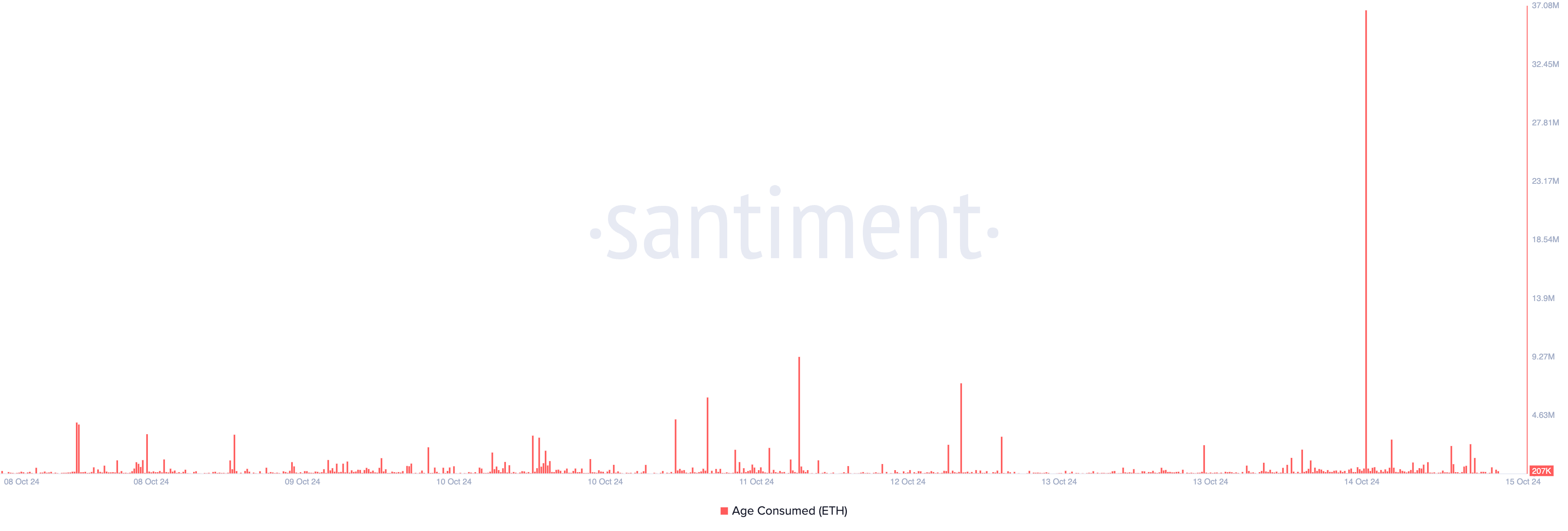 This price rally has prompted many dormant coin holders to become active, as evidenced by the spike in ETH’s age consumed. Santiment’s data shows that this metric, which tracks the movement of long-held coins, skyrocketed by over 400% on Monday, reaching 66.42 million — its highest since October 4.