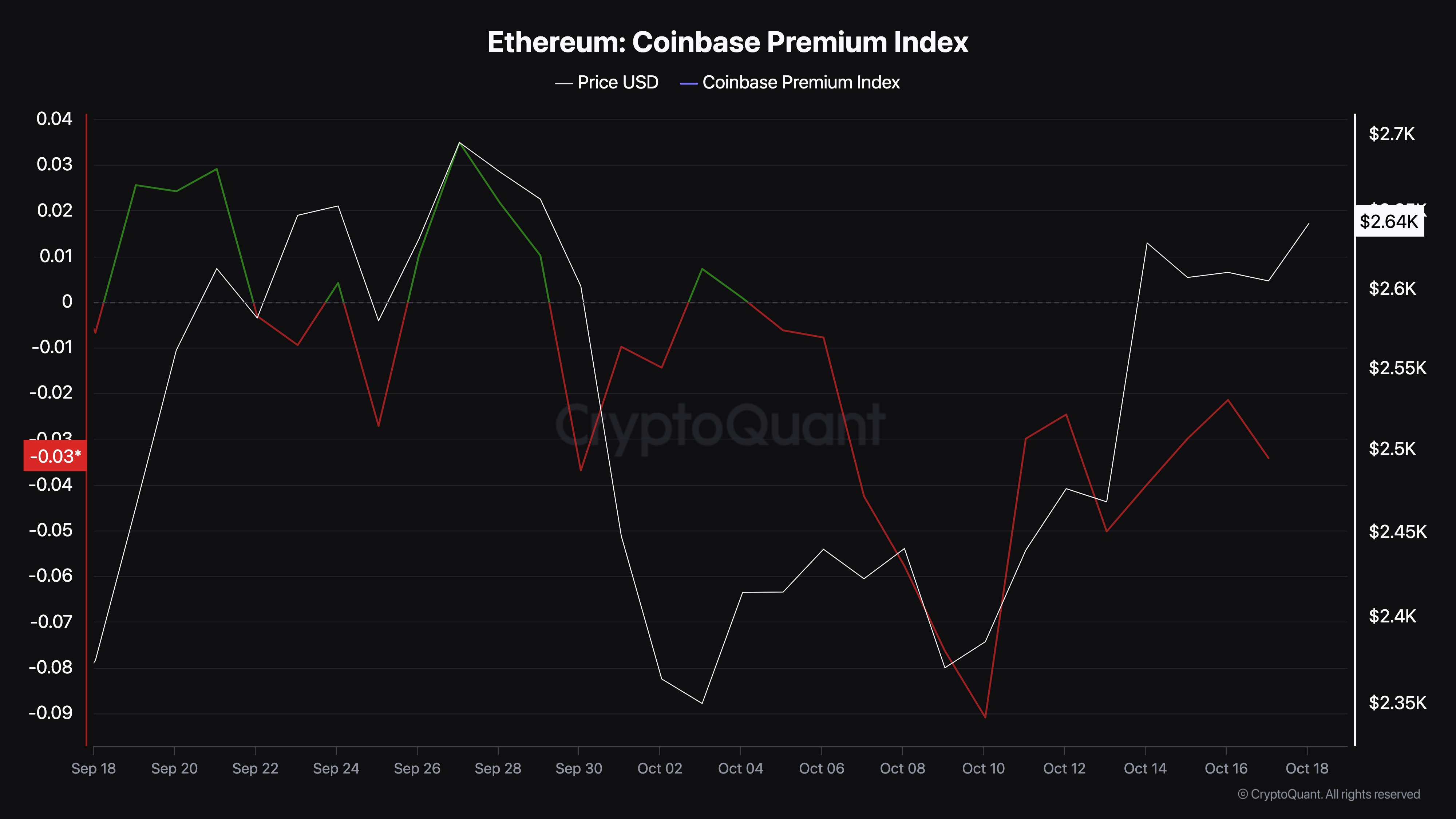 Moreover, this sentiment seems to have extended to retail investors in the US. According to CryptoQuant, the Coinbase Premium Index, which tracks buying and selling pressure, has recently dropped into the negative region. This shift indicates that more investors are selling ETH rather than buying, reflecting a bearish outlook for the altcoin.
