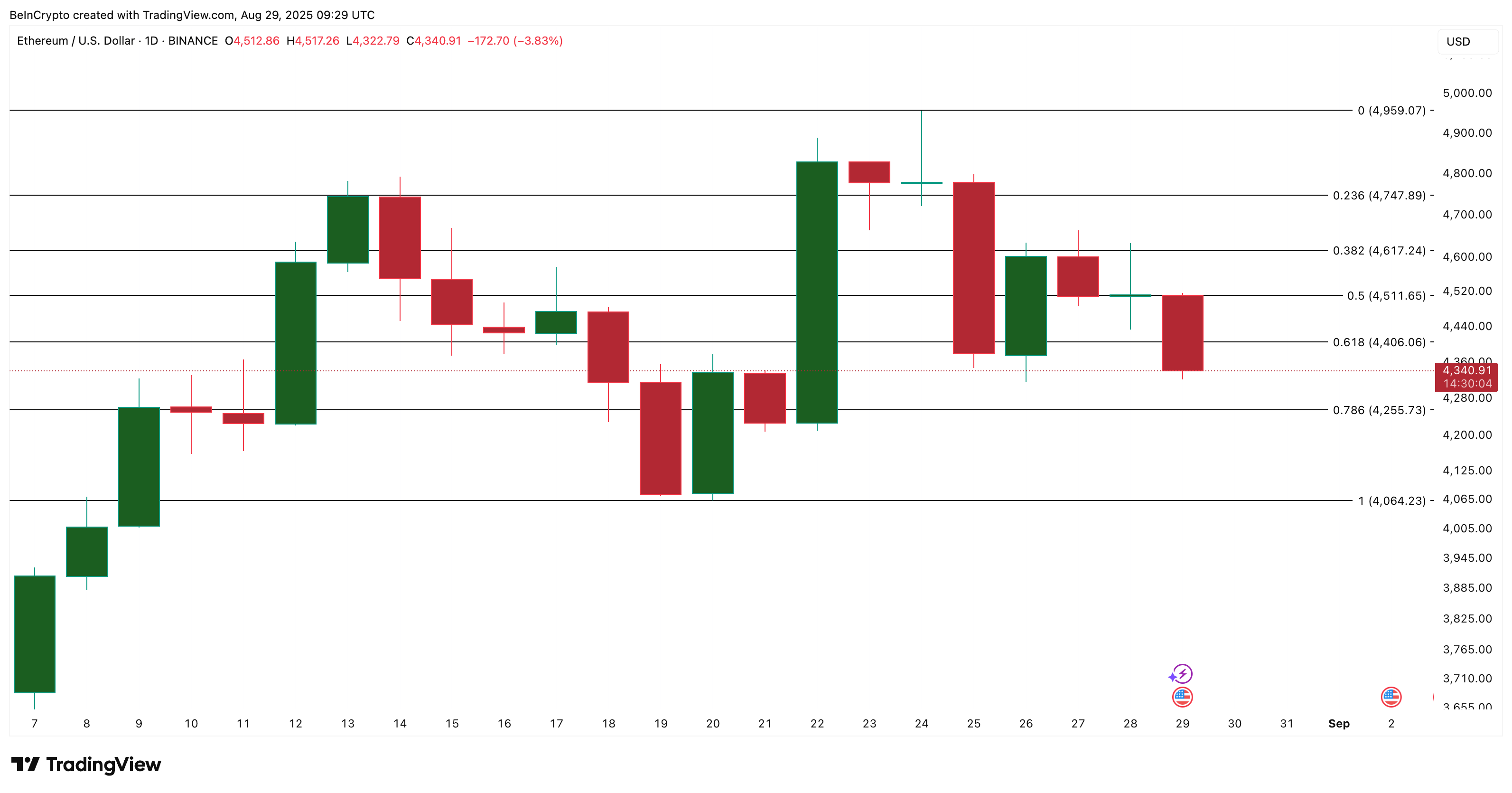 - On August 17, the same pattern led to a 20% move, as ETH climbed from $4,074 to $4,888.