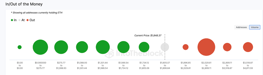 According to IntoTheBlock’s Global In/Out of Money, the bears can take control momentarily if ETH cannot hold its price support at $1,800. However, the 2 million addresses that bought 4 million ETH around that price will offer support.Â
