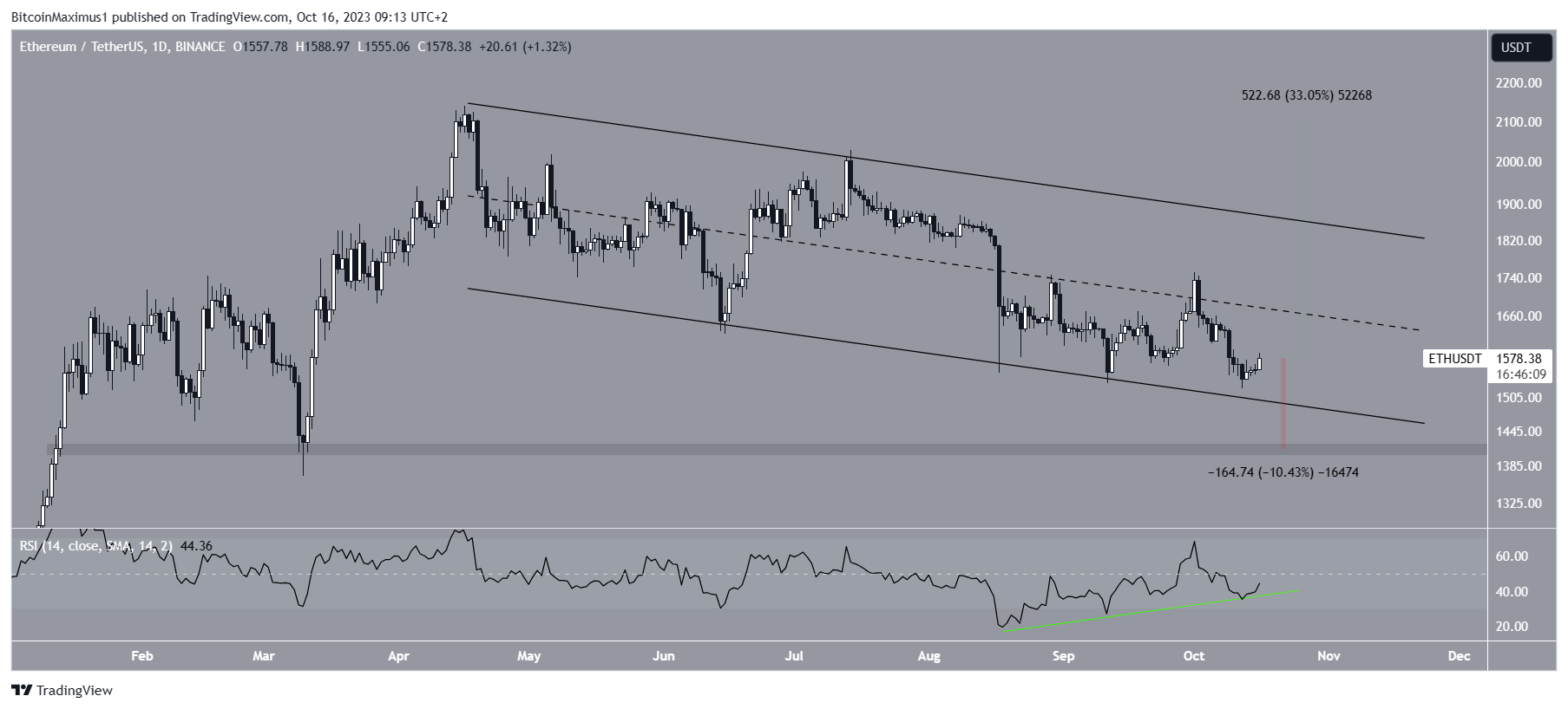 Despite this bullish ETH price prediction, a breakdown from the channel will invalidate the divergence and can lead to a 10% drop to the next closest support area at $1,400.
