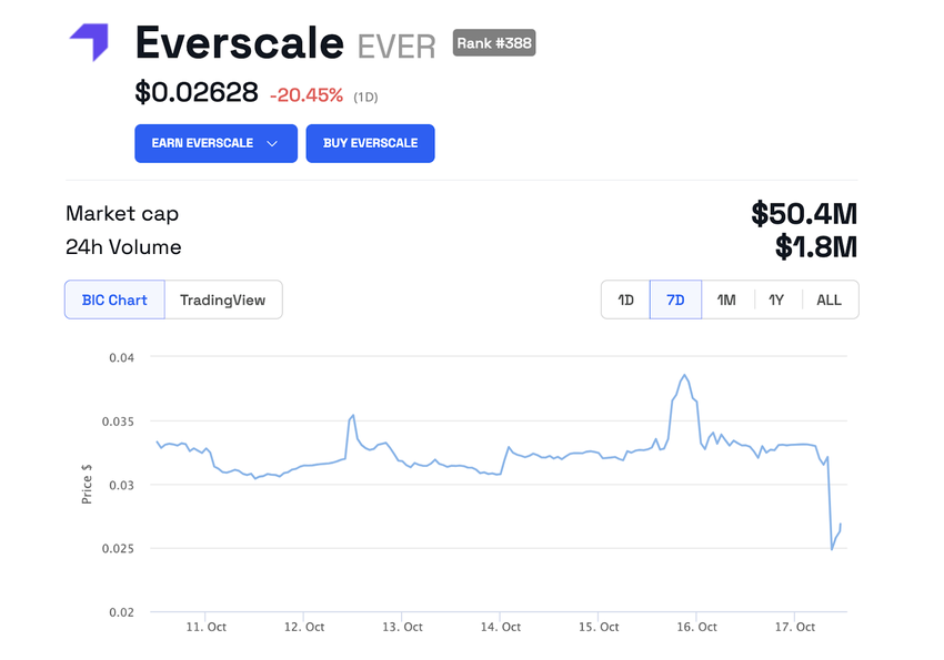 Everscale’s (EVER) price has tanked by 20% as the team claims tokens have been stolen. But others are questioning whether it is a rug pull.