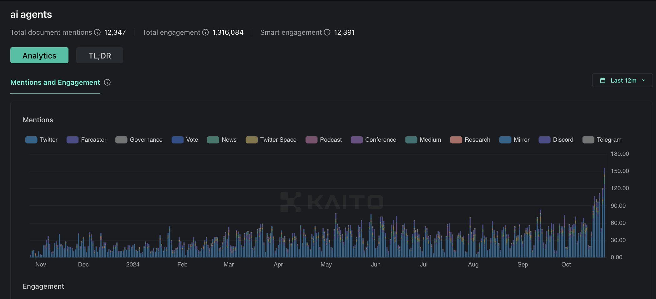 There is significant community interest in this topic. Data shows that mindshare for the keyword “AI Agents” surged in October, marking the highest level in the past year.