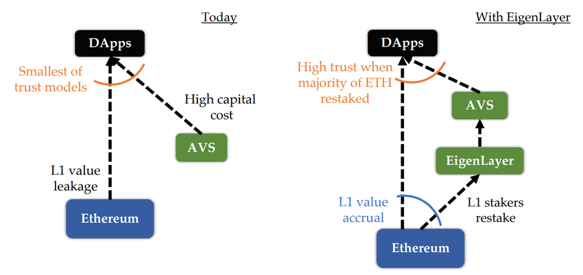 [1] – Comparison of the ecosystem of AVSs today and with Eigenlayer (Source)