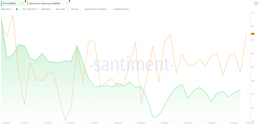 As seen in the chart below, SAND’s daily active addresses also hit a monthly peak of 697 on September 27.