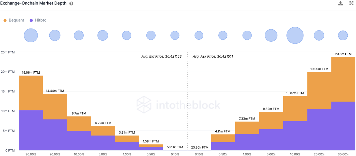 IntoTheBlock’s Exchange Market Depth chart provides a data-driven estimate of potential FTM price movements in the coming weeks.