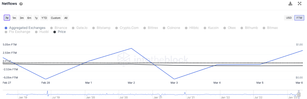 Notably, another on-chain trend that could culminate in a bearish FTM performance in March is the influx of tokens on exchanges.