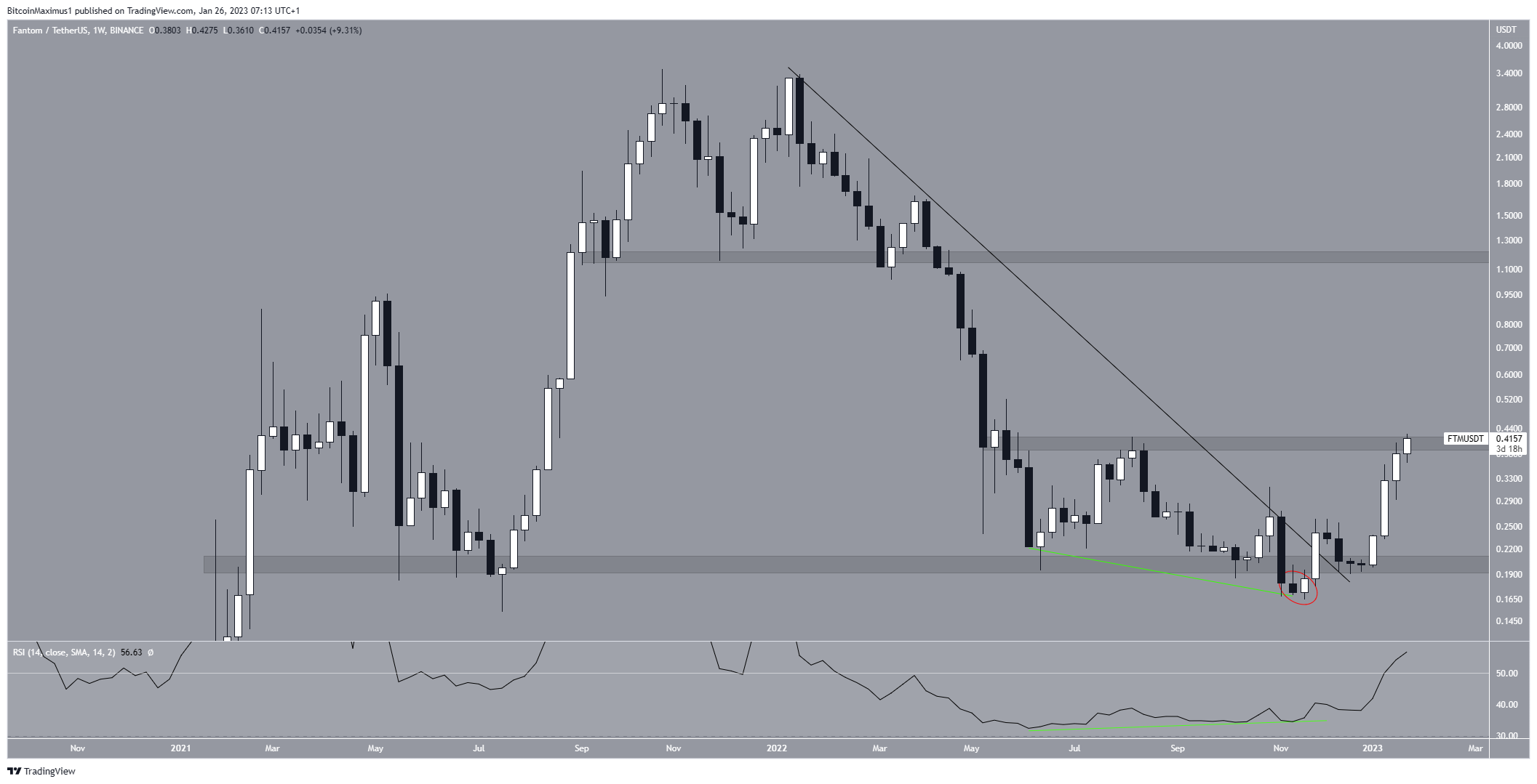 FTM is the native token of the Fantom network, a smart contract platform created as an alternative to Ethereum. The weekly time frame shows that Fantom price has decreased under a long-term descending resistance line since the beginning of 2022.