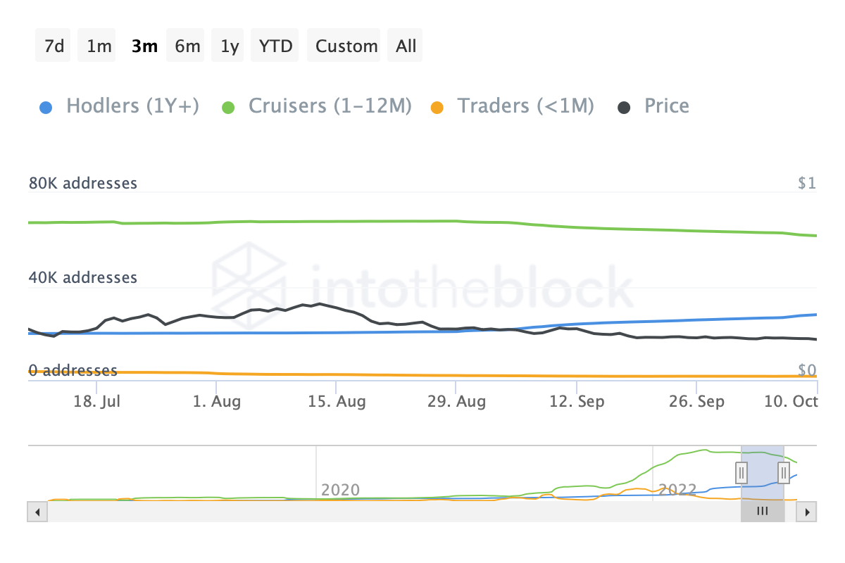 IntoTheBlock data highlighted that Fantom holders saw a 31.47% rise in the last 30-days. However, cruisers, which earlier dominated FTM addresses, saw a 13.36% decline. Addresses by time held data for Fantom showed a healthy rise in holders and traders over the 30-day window.