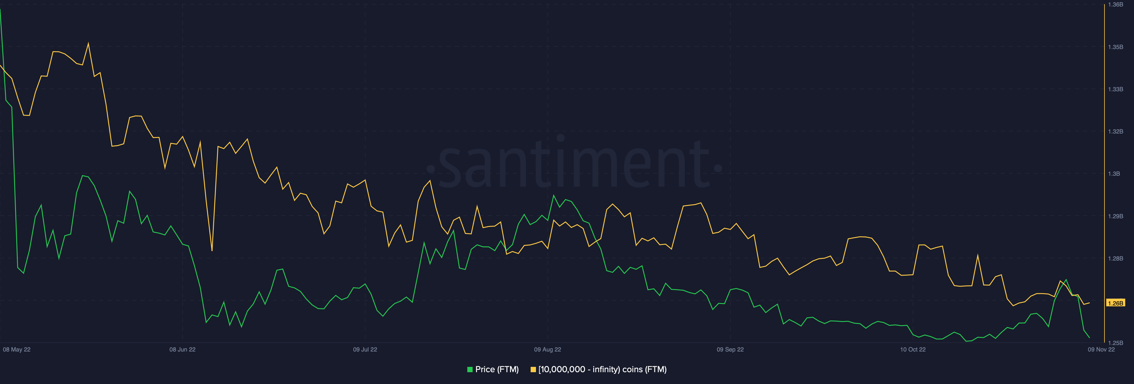 Holders increasing their balance is a positive long-term signal, however, whales often play a more significant role in macro price movement. Sadly, FTM whale addresses had been reducing holdings.