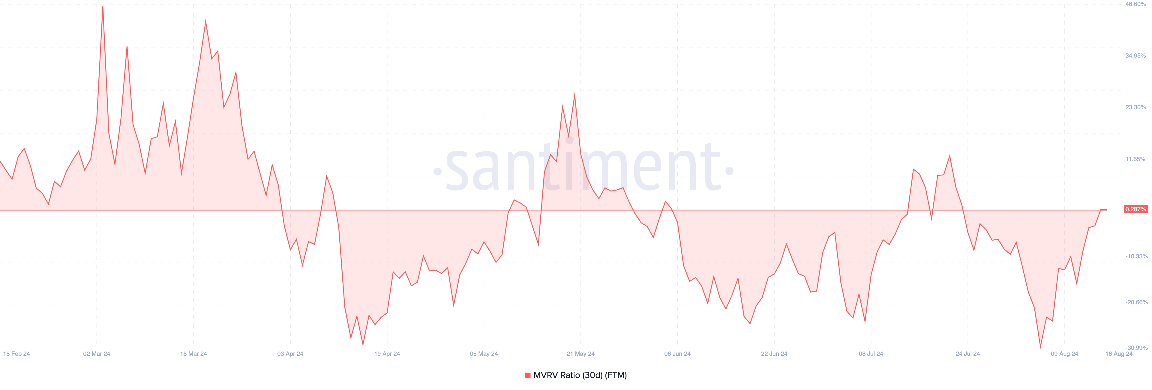 Currently, on-chain data from Santiment shows that the recent price rally has pushed the MVRV ratio back into positive territory. Historically, when Fantom’s MVRV ratio returns to positive levels, it often continues to climb, indicating potential for further gains.