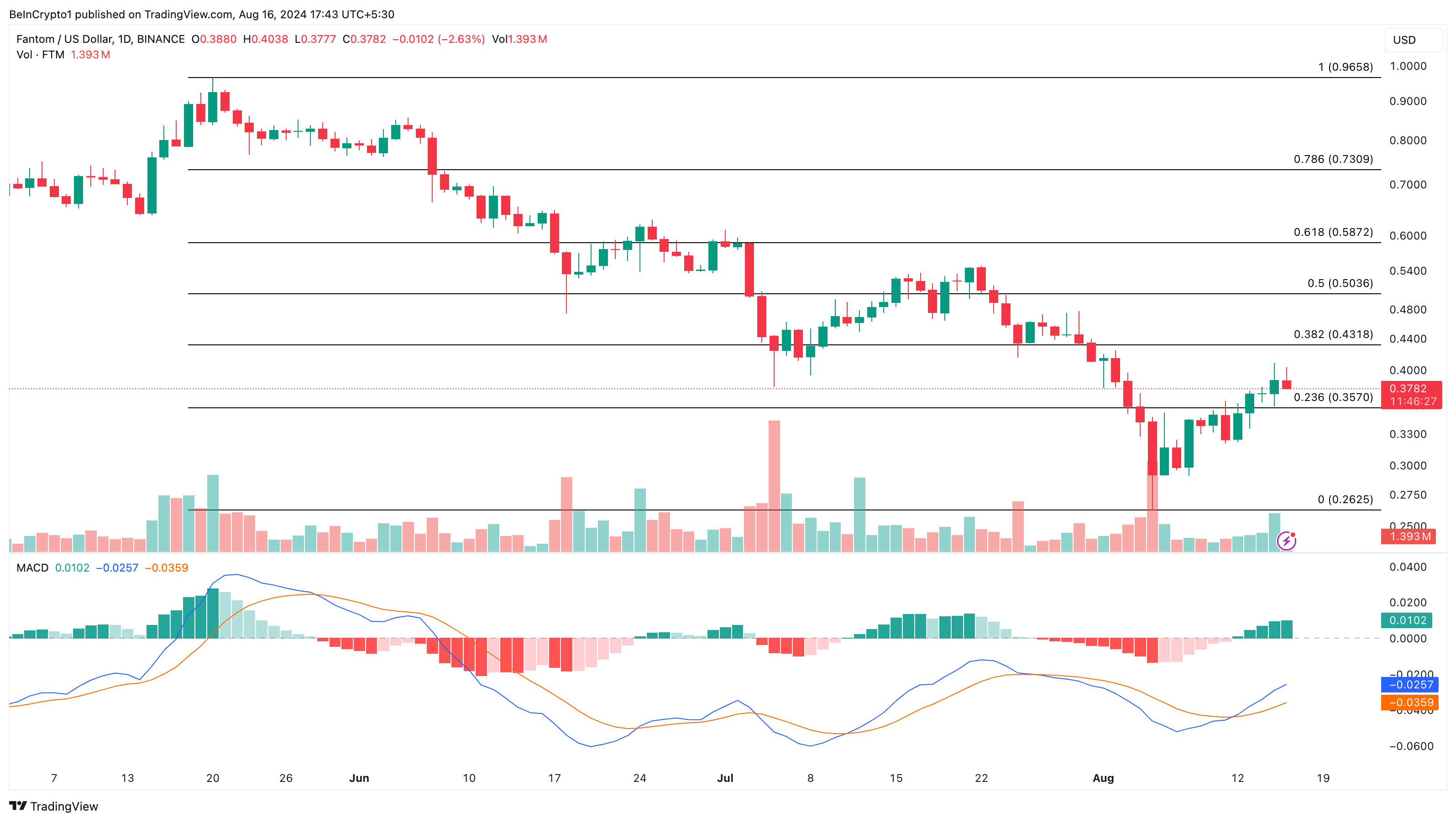 Should the reading continue to rise, so will FTM’s value. If this is the case, the price of the token may hit $0.43. However, the cryptocurrency may face rejection around the $0.40 psychological zone. If this happens, FTM will likely drop to $0.35.