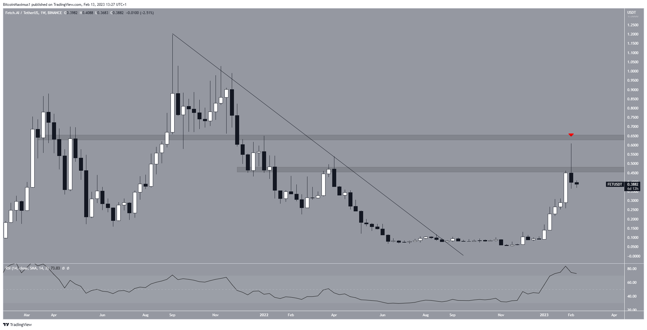 Since breaking out from a long-term descending resistance line, the FET coin price has increased at a rapid pace. It rose by 656% at one point, leading to a high of $0.61. However, the price has fallen since.