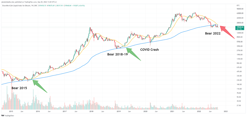 Therefore, until recently, it was thought that the 200W MA level was a solid indicator of the BTC bottom and represented an excellent buying opportunity. The increases that followed hitting this area in the past were impressive: