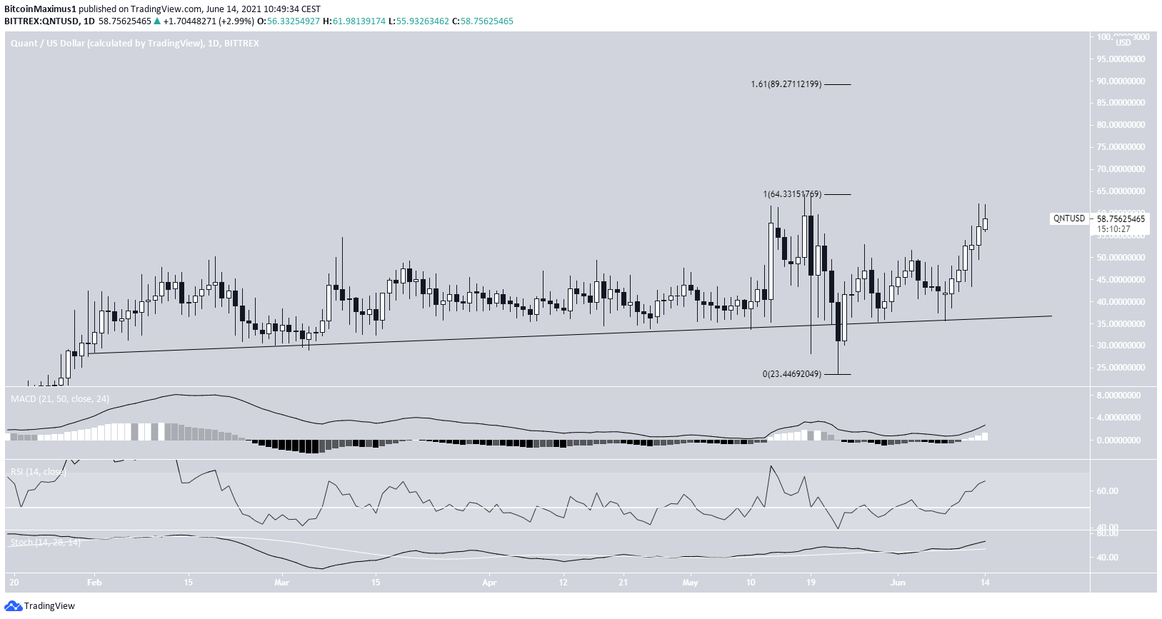 QNT has been increasing since May 23, when it bounced above a long-term ascending support line. The line has been in place since Jan. 30.