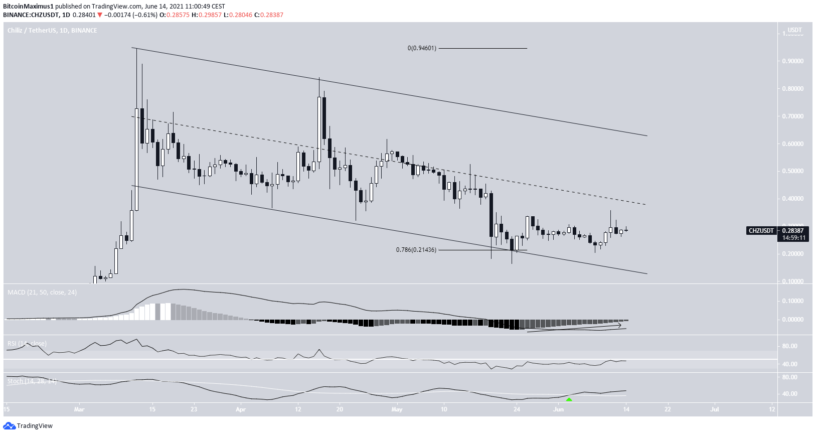 Since March 12, CHZ has been trading inside a descending parallel channel. These structures often contain corrective movements.