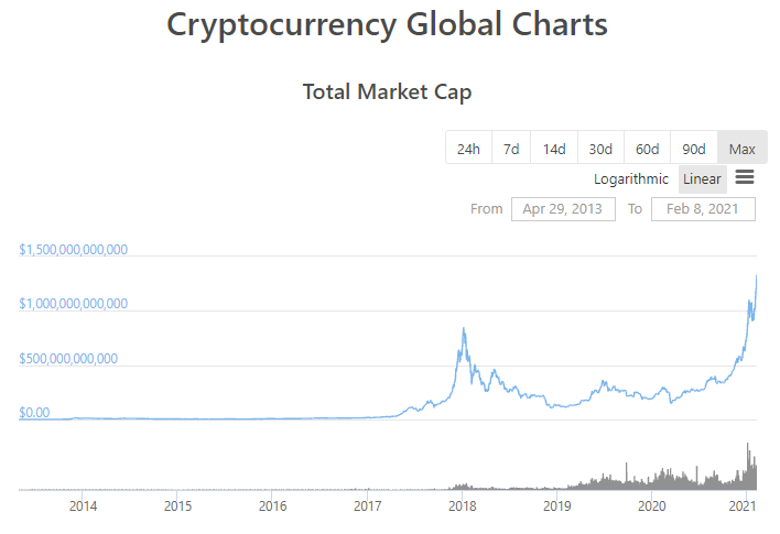 The total cryptocurrency market capitalization reached a record-breaking $1.33 trillion as the week Feb. 1 – Feb 8 comes to an end. Having started the week at $1.17 trillion, this represents an increase of 13.68%, one of the largest single week growths in the market’s history.