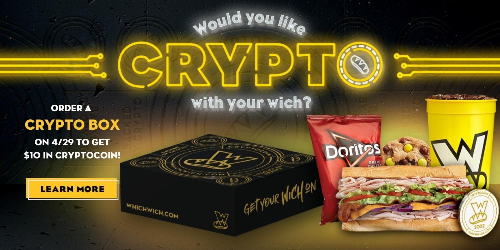 SponsoredSeemingly eager to ride the popular crypto train, a fast-food company called Which Wich is offering free crypto with their sandwich box meal on April 29.