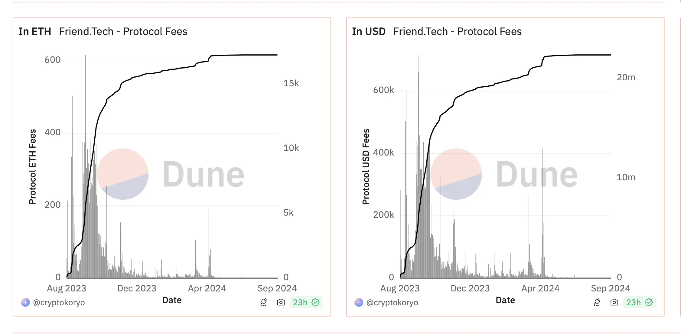 DefiLlama data reveals that daily generated fees have spiraled down to just $10,000, compared to a previous peak of $2 million. Data from Dune also shows a plateau in protocol fees and inflow metrics, further reflecting the platform’s decline.