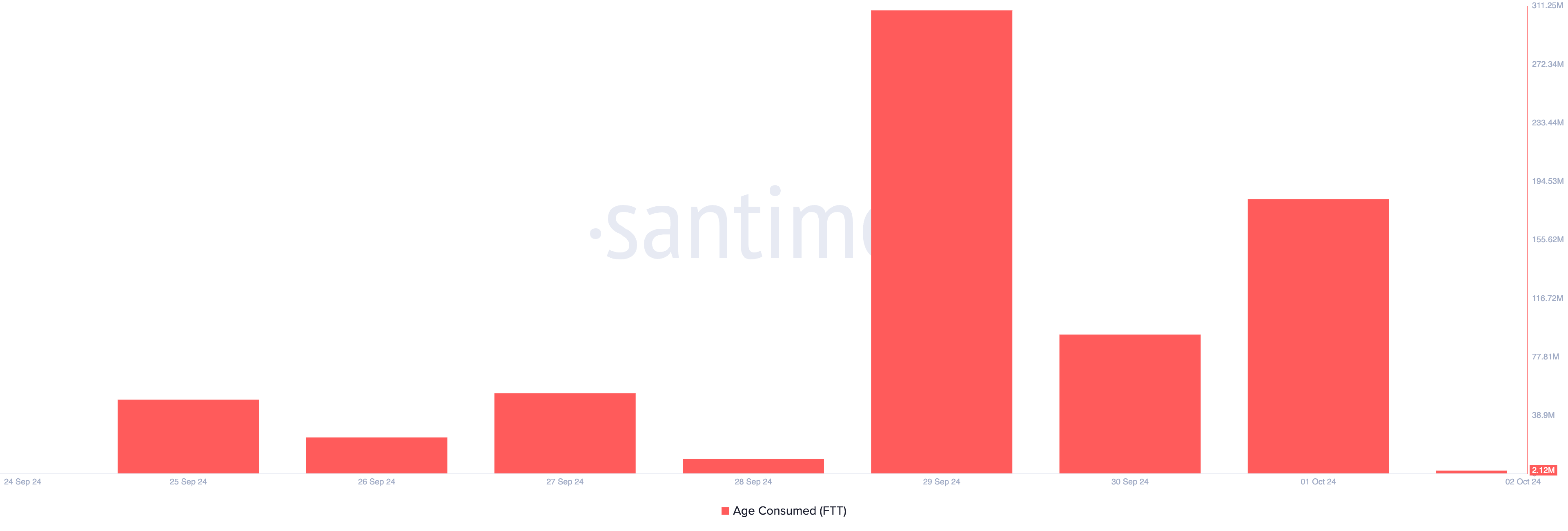 FTT’s rising on-balance volume confirms the surge in FTT accumulation ahead of the October 7 hearing. This indicator, which measures an asset’s buying and selling pressure, now sits at its highest level since December 2023, rising by 69% over the past four days.