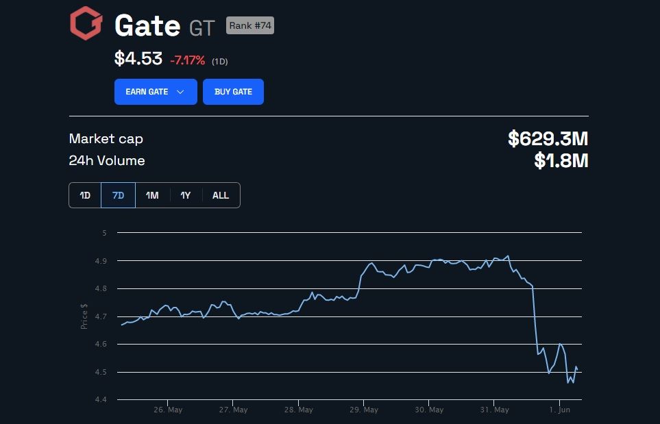Crypto exchange Gate.io’s token GateToken (GT) has sharply decreased in price following rumors that it has been affected by the Multichain incident. The exchange has stated that it is in a healthy condition.