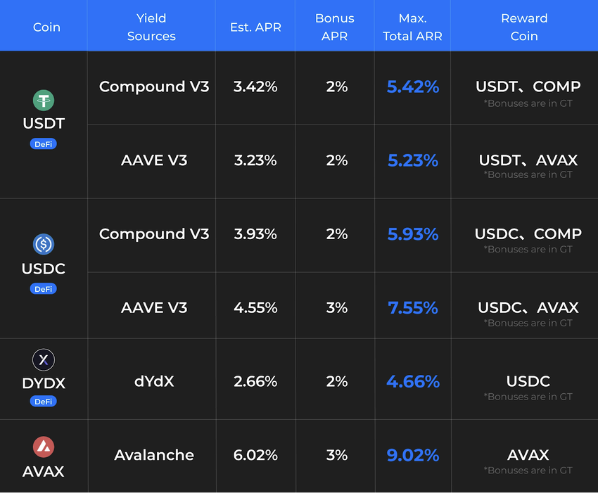 Recently, Gate.io Staking is set for a major product upgrade, with the addition of four popular assets: USDT, USDC, DYDX, and AVAX. Alongside this expansion, the platform is launching exclusive bonus rewards, offering annualized yields of up to 9.02%, creating unprecedented earning opportunities for investors.