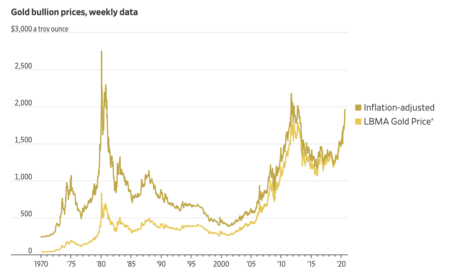 The price of gold finally managed to break above the precarious $2,000 level during trading Tuesday, marking a new all-time high for the precious metal.