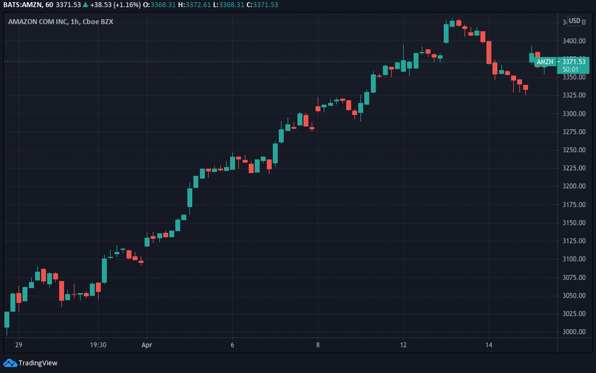 Since the end of March Amazon has been on a roll. The stock’s price has seen a nearly unbroken upwards trend for almost the past two weeks.