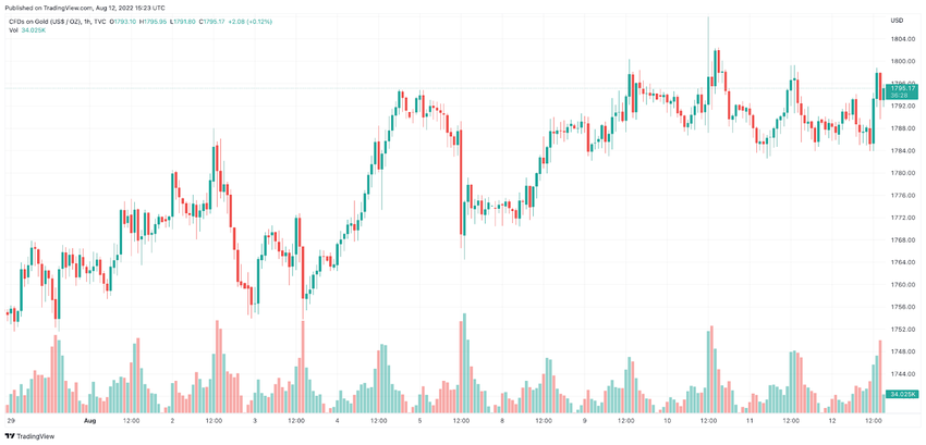 Gold trended upwards over the past two weeks. Gold was trading at $1,755 on July 29, rising in fits and starts to $1,785 by August 2. Although it dropped from there back to $1,755 by the next day, the day after it had risen again, reaching $1,795 by August 5. Gold then dipped again to $1,775, where it opened on August 8 before rising again. Since August 9 gold has been trading between $1,785 and $1,800 and is currently around $1,795.