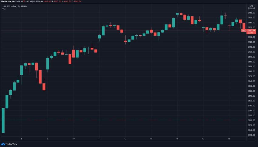 Following the small bull run over the course of last week, the S&P 500 reached a new all-time high of $3,960 on March 11. Since then, it traded up to another all-time high of $3,980. However, it seems to have hit resistance there and is currently trading around $3,930.