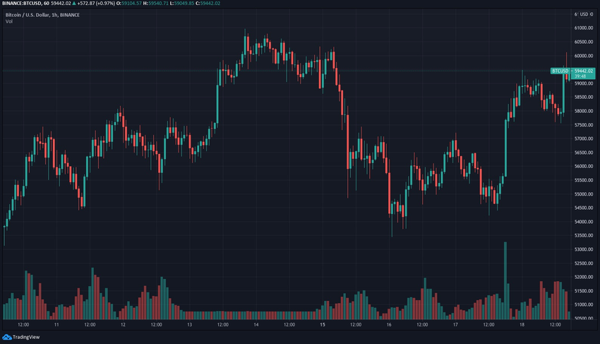 Bitcoin price continued to struggle until seeing a massive rally late in the day on March 17, pushing it back above $58,000. It is currently struggling with resistance keeping it just below $60,000.