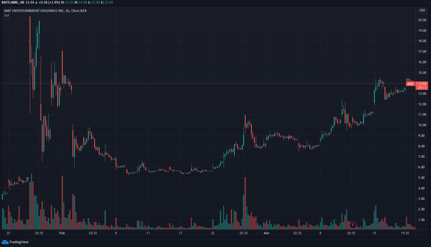 This week’s wildcard stock is AMC Entertainment Holdings (AMC), which operates a large cinema chain in the US. Like GameStop, AMC had been another stock taken on by Reddit group WallStreetBets, although nowhere near as dramatic.