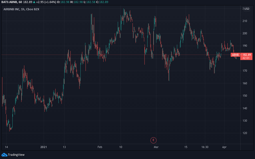 The stock saw healthy buying pressure in the first month of the year. This continued to its peak, once again in mid-February, of $219.88. As a new stock, it has seen a lot of volatility, but its overall bullish trend now appears to be trading sideways, as another spike in mid-March failed to clear the previous all-time high. It is currently trading around $182.