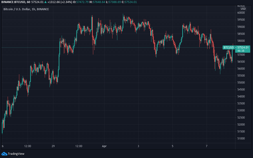 On April 3, the price fell to $57,000, which it struggled to overcome the next day before falling back to that level on April 5. Later that day, though, the price bounced back up above $59,000. Persistent selling pressure then took it back down to $56,000 by April 7. Bitcoin is currently trading just below $58,000.