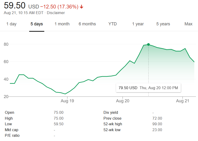 Still, buying in on Wednesday could have been profitable. The premium at the trust’s peak of $78.74 was about 1400%.