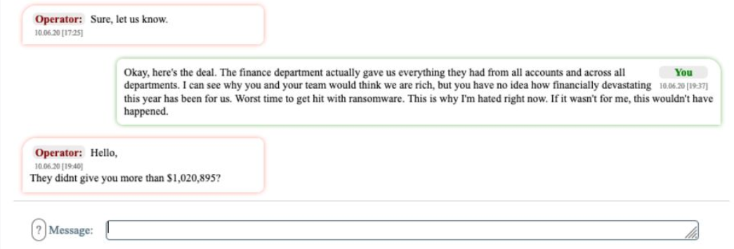 These were the “magic words” that actually opened the hackers up to bargaining. Using more psychological tricks, the negotiator reduced the ransom to $1.14 million, which was paid with 116 bitcoin.