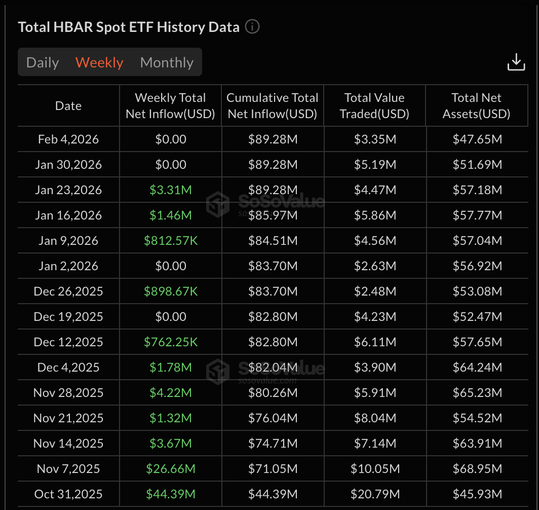 At the same time, spot HBAR ETFs have shown no recent inflows over the past two weeks. ETFs bring institutional capital and could help CMF move above the zero line. Their absence limits upside momentum.