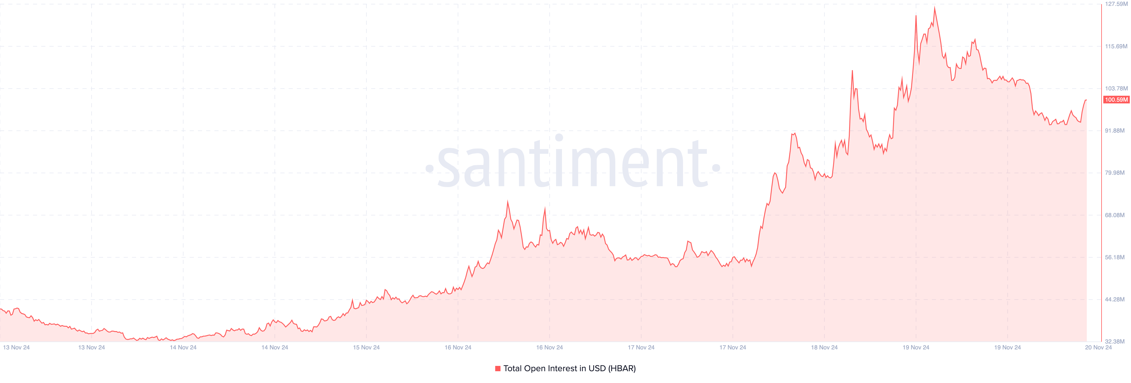Following the development, total Open Interest (OI) in HBAR derivatives has dropped from $120 million to $100.95 million.