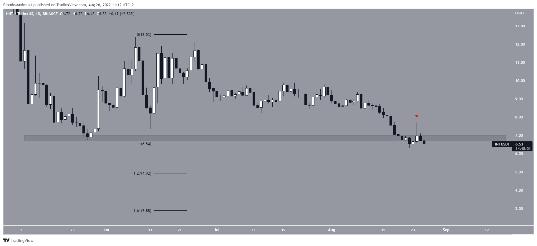 On Aug 22, HNT fell to a new yearly low of $6.30. While it made an attempt at moving upward, it was rejected by the $6.80 resistance area (red icon) and has been falling since.