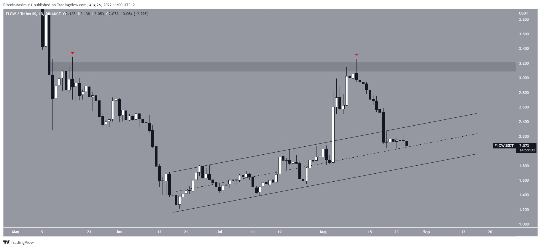 FLOW had been increasing inside an ascending parallel channel since June 18. On Aug 4, it broke out from the channel and proceeded to reach a high of $3.25. However, it was rejected by the $3.20 horizontal resistance area (red icon) and has been falling since.