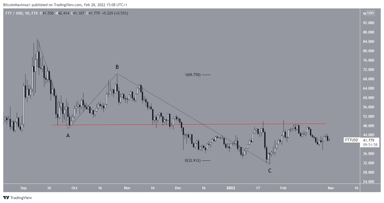 Finally, the wave count supports the possibility that the price will increase. The FTT price decrease resembles an A-B-C corrective structure, in which waves A:C had a nearly 1:1 ratio.