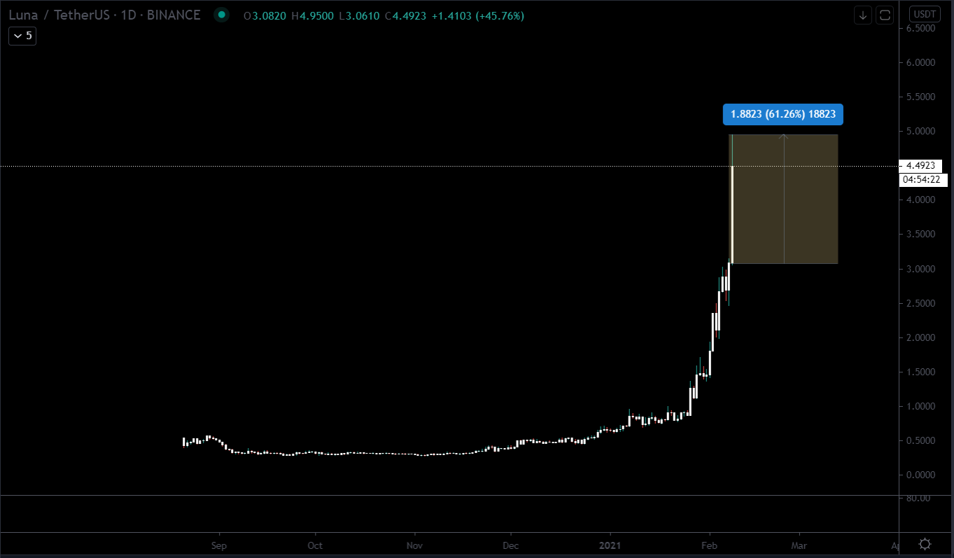 Terra has surged in recent sessions as the project climbed 60% in price on Monday, moving the little-known project into the top 30.