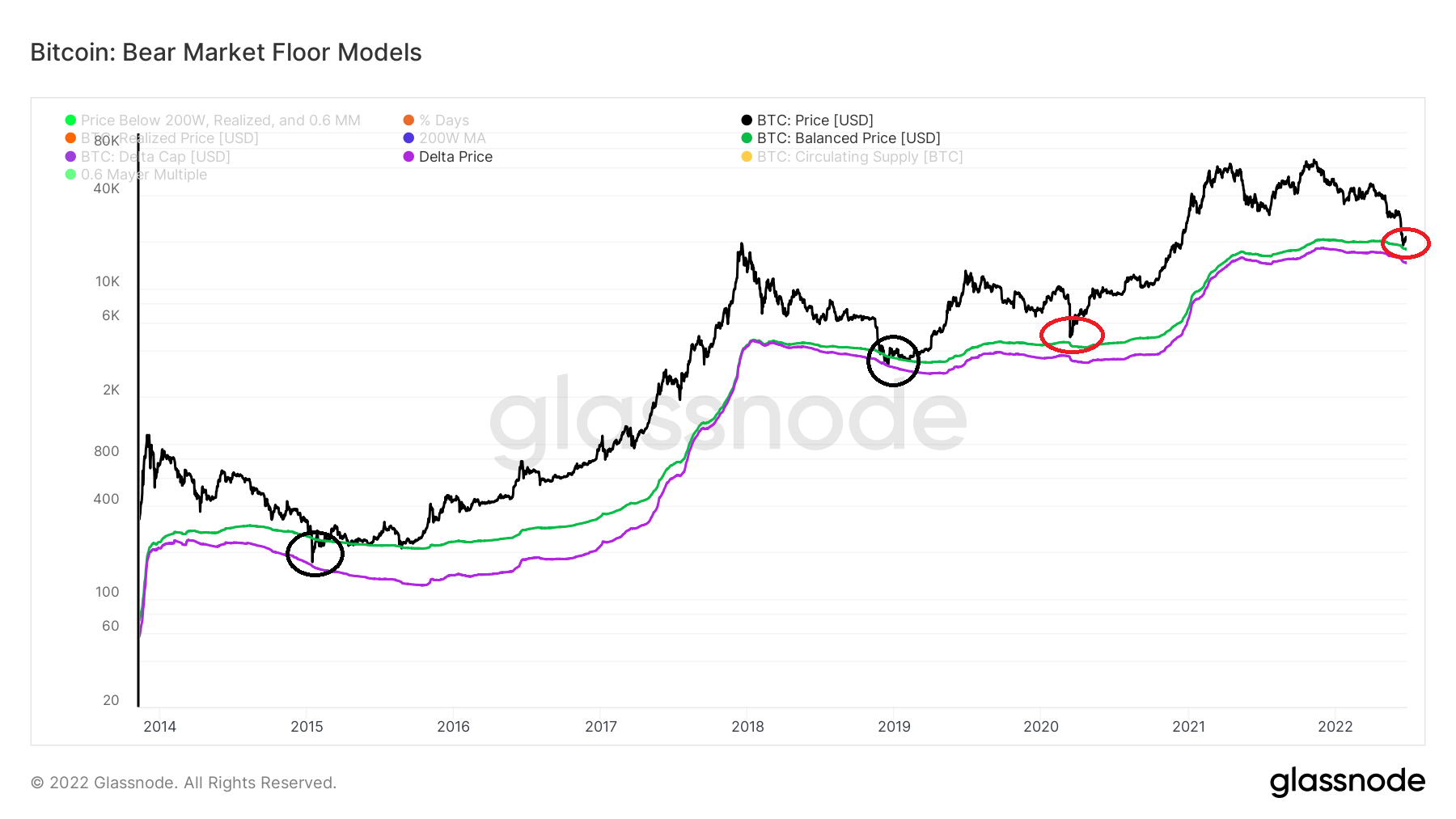 Currently, the BTC price is trading below its Realized price, the 0.6 Mayer multiple, and the 200-week MA, which are close to $23,000. This has only occurred twice before in history (green vertical lines).