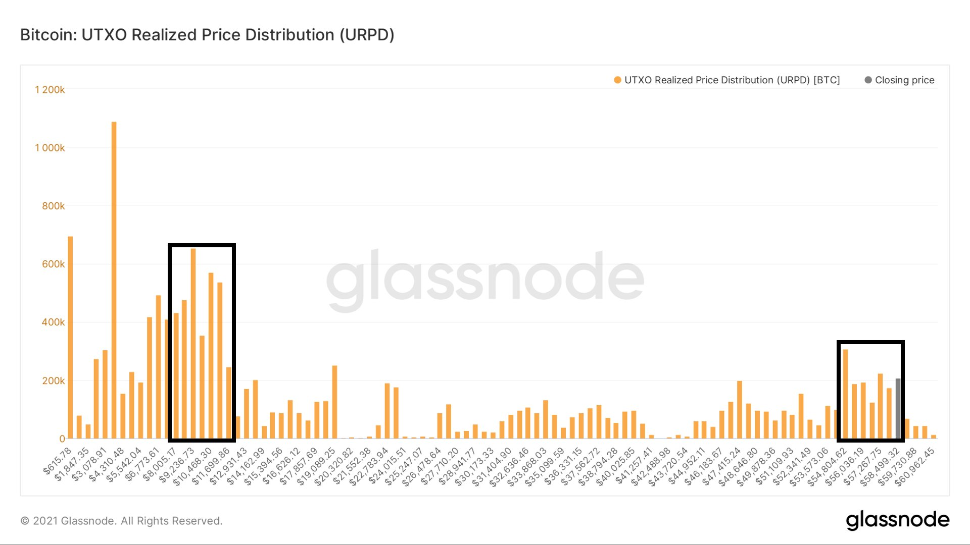We see a clear increase in volume in the $55,000 to $60,000 range. Such levels have not been seen since the $9,000 – $12,000 area, which last year laid the foundations for current increases. According to @WClementeIII, this is a very bullish signal, indicating that one should not “expect BTC’s price to stay in this range for much longer.”