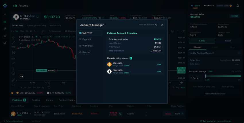 You can play with the Horizon Futures Testnet today at: https://testnet.horizonprotocol.com/. Make sure to change your wallet to Arbitrum Testnet. Have fun and please join our Telegram or Discord to give us your feedback!