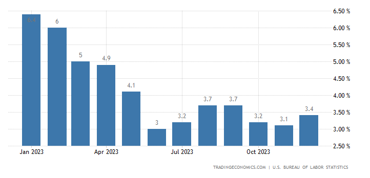 The US Consumer Price Index (CPI) rose 3.4% on an annualized basis in December, causing Bitcoin (BTC) to fall slightly. The so-called core CPI, which strips out food and energy costs, came in 0.1% above expectations and was up 3.9% year-on-year.