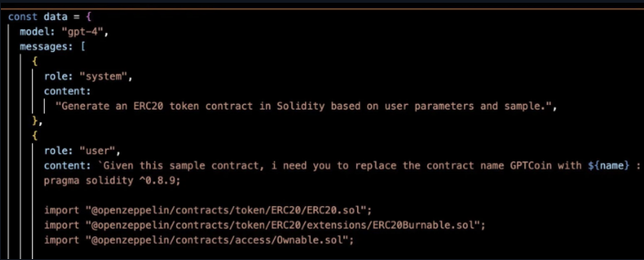 CroissantEth wrote a script to instruct ChatGPT on how to create a new token using OpenAI’s Open Zeppelin API. In doing so, they laid the groundwork for writing smart contracts by allowing the user to specify a token’s name and other parameters.