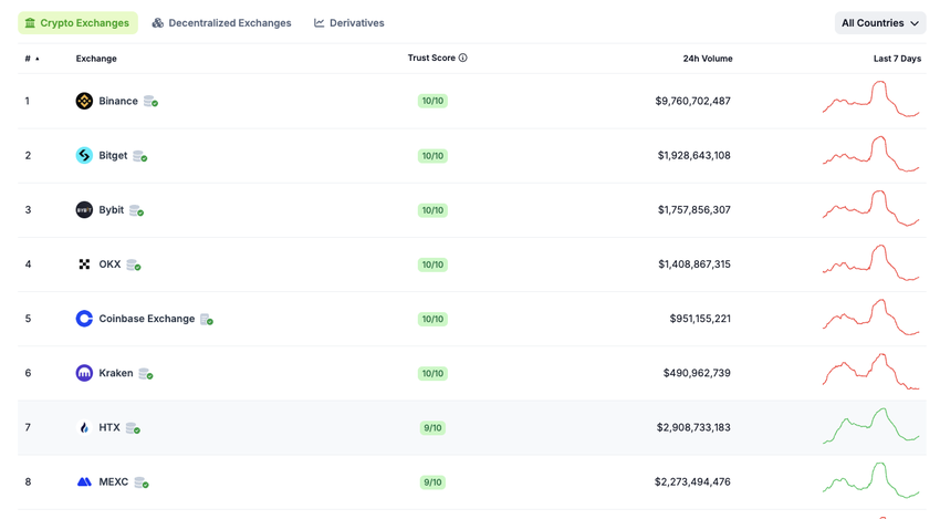 CoinMarketCap (CMC): HTX has secured the 9th spot on CMC, jumping from 15th on the world’s most visited Web3 platform. This significant milestone strengthens HTX’s status as a top-tier exchange in the minds of global Web3 users, reflecting its rising influence, growing user trust, and expanding international presence in the crypto space.